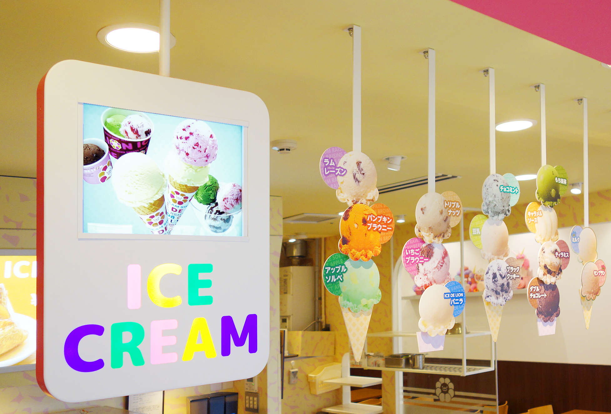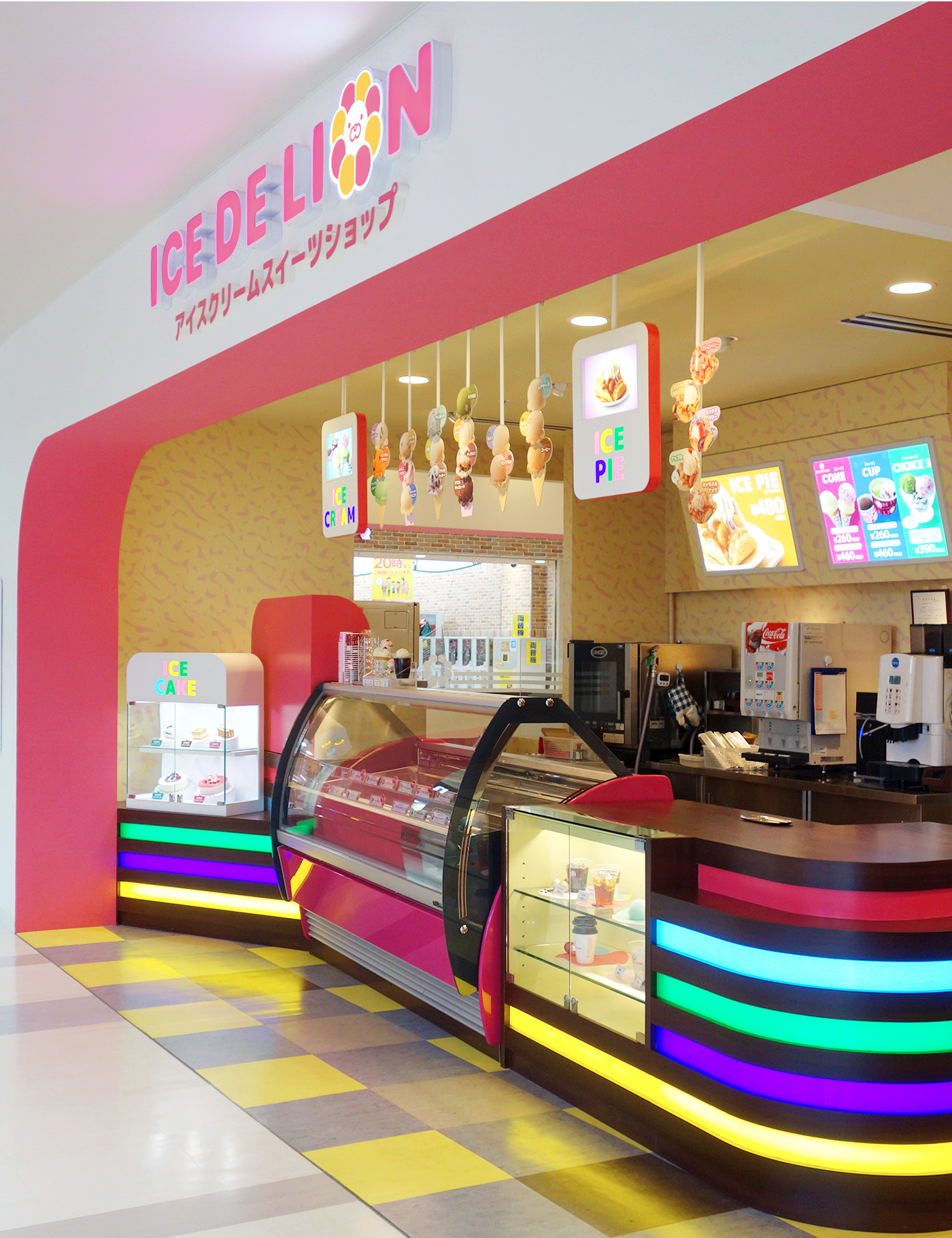 ショッピングモール型のアイスクリーム店舗の設計&ディスプレイ